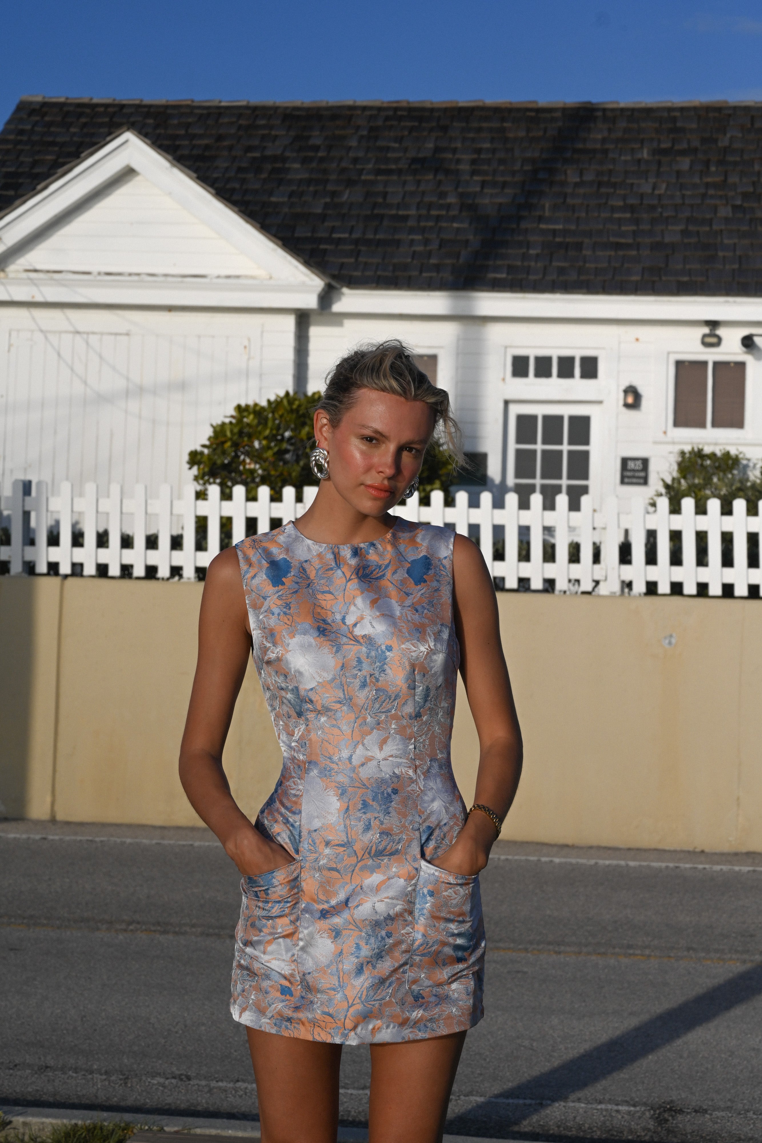 The Esti Dress has a vintage-inspired silhouette with a perfectly structured bodice and artistic floral print. The mini length, tie back, bodice structure, and front darts flatter all body types for any elegant occasion.